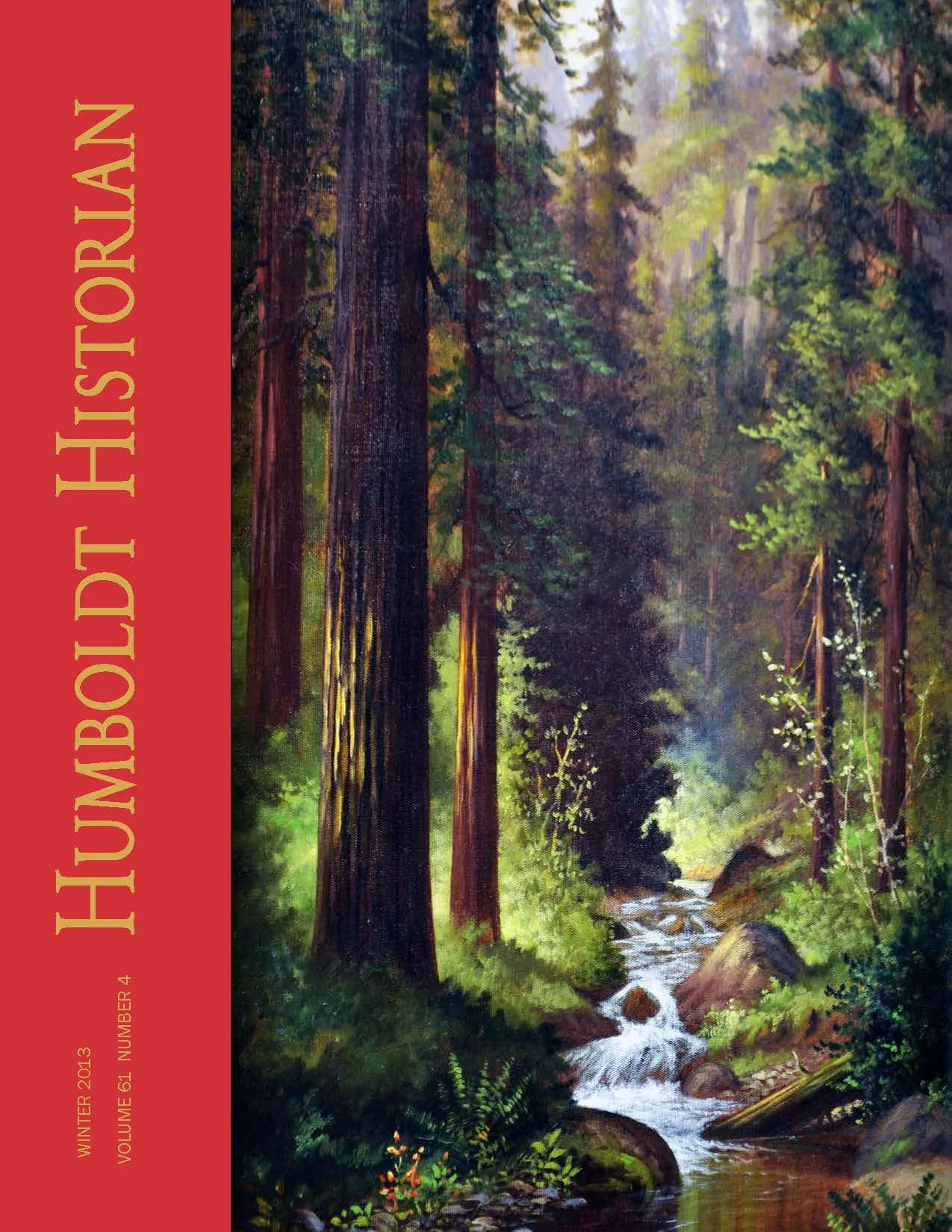 “This 1914 painting by C. T. Wilson is one of a pair hanging in the atrium of the Humboldt County Courthouse. Another C. T. Wilson painting is featured on the cover of the Fall 2009 Historian. A skilled marketer, Wilson arranged to have his paintings appear on calendars nationwide, enabling many people all over the country to see images of North Coast redwoods in color for the first time.”
